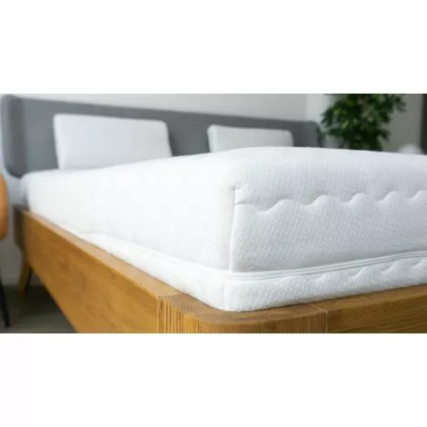 Matelas orthopédique à 7 zones à ressorts ensachés de haute qualité: Le matelas ne contient pas de ressorts ensachés normaux, mais un noyau de ressorts ensachés en forme de tonneau. Elle est considérée comme de qualité particulièrement élevée et assure une grande durabilité et adaptabilité. Le matelas se compose d’un noyau de 21 cm et a avec une housse une hauteur d’environ 24 cm.