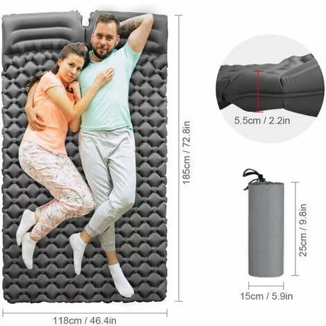 Ce matelas pneumatique gonflable peut accueillir 2 personnes. Il est facile a gonfler et a degonfler, tres pratique pour la randonnee, la randonnee, le camping et d’autres activites de plein air.