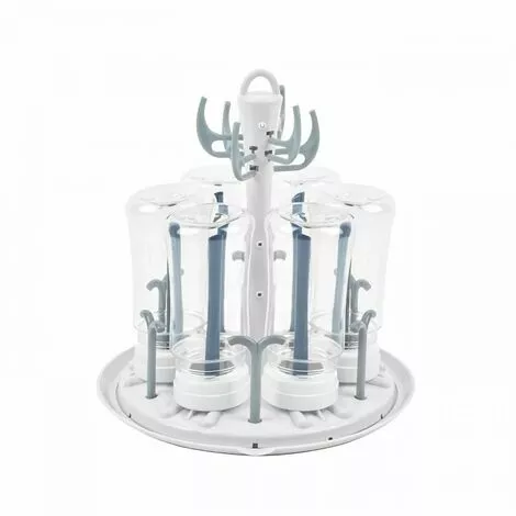 Seche biberons compact, multiples branches amovibles pour moduler la configuration et accueillir tous types de biberons et autres. Capacité de 6 biberons, réceptacle d’eau amovible.