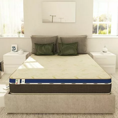Ce modèle particulier, grâce à la mousse à mémoire de forme en pierre de taille, permet un effet d’auto-massage sur tout le profil de la personne.Les ressorts présents sous la mémoire garantissent compacité et résistance au matelas.