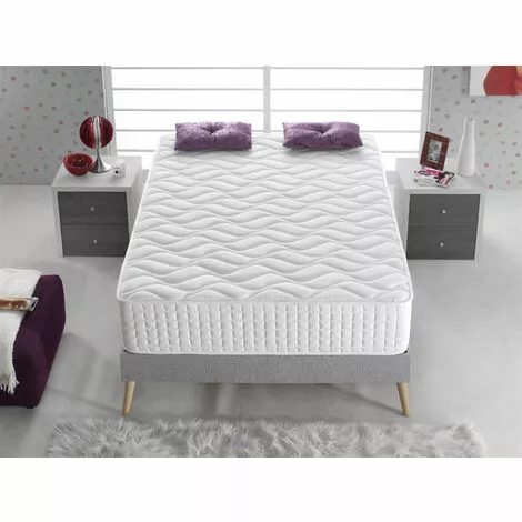 MOUSSE AIRPUR “SMART CONFORT”: Mousse de dernière génération 25 cm de hauteur pour une parfaite indépendance de couchage, ses 35 kg de Densité, vous procurerons un fermété qui evitera l’enfoncement du corps dans le matelas. Dans le même temps, ses alvéoles de cellules ouvertes permettront une parfaite aération du matelas., VISCOGRAPHENE: Un matériau qui a révolutionné le monde du repos. Grâce à cela, vous allez profiter chaque nuit du confort et de l’adaptabilité typiques de la mousse à mémoire de forme, associés à une respirabilité maximale jamais vue auparavant. FIBRE DE POLYESTER SUPERSOFT: Grâce à ces fibres l’accueil sera parfait dès le premier contact avec le matelas, convertissant votre matelas en un nid douillet. TISSU STRECH JACQUARD MULTIZONES: Conçu spécialement a partir de fibres de polyester pour que el matelas soit résistant sur la durée au frottements et au peluchage. TISSU 3D SUPER TRANSPIRABLE: Un tissu spécialement conçu pour les mois d’été et qui permet de laisser circuler l’air sur la superficie du matelas et éviter l’acumulation de chaleur.