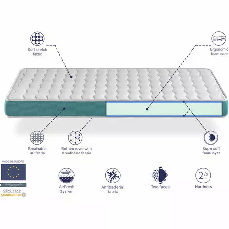 Voici le matelas EKOZEN. Modèle ergonomique et très adaptable grâce à ses couches de confort. Matelas en mousse de haute qualité, de fermeté moyenne, frais et respirant.