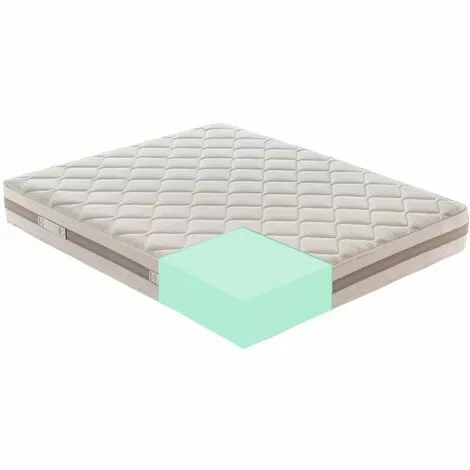 Chaque matelas en mousse à base d’eau est composé d’une dalle interne en polyuréthane d’une hauteur de 19 cm. L’épaisseur finale du produit est de 19 centimètres. Le rembourrage a une épaisseur de 2 centimètres. La plaque interne est en polyuréthane monobloc, ce qui rend le matelas plus léger et plus facile à déplacer. Le polyuréthane expansé à l’eau est un matériau résistant et capable de conserver sa forme avec le temps. Tous les matériaux composant ce matelas sont certifiés CE; le matelas est entièrement fabriqué en Italie et garanti 20 ans.