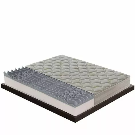 Le matelas en mousse à mémoire est un produit à 3 couches différentes. La couche superficielle est constituée de 1 cm de mémoire “Gel” en partie supérieure du revêtement. Il s’agit d’une mousse fraîche capable de maintenir la température du matelas constante, ce qui la refroidit surtout dans les environnements chauds et secs, grâce aux microparticules de “Gel” “qui absorbent la chaleur rapidement. Au lieu de cela, la plaque interne est constituée d’une couche de mousse mémoire de 6,5 cm de hauteur, d’une structure cellulaire ouverte et de 9 zones différenciées; la couche inférieure de la dalle est en polyuréthane d’une épaisseur de 18,5 cm. L’épaisseur totale du matelas est de 25 centimètres.