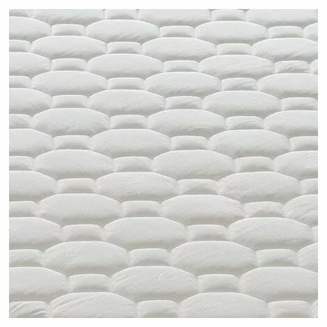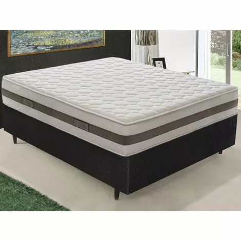Chaque matelas a une feuille interne double couche, composée d’une surface en mousse à mémoire hautement respirante, grâce à sa structure à cellules ouvertes, 7 centimètres d’épaisseur, qui est modelée sur le profil du corps grâce à la chaleur émise pendant le repos. La partie inférieure est en mousse de polyuréthane à base d’eau éco-compatible, structurée pour résister à la pression exercée par notre corps; son épaisseur est de 18,5 cm. Avec ces deux parties, fabriquées avec des matériaux de la plus haute qualité, il y a le rembourrage de 2,5 cm. C’est complètement hypoallergénique, antibactérien et anti-acarien. Résistant aux moisissures et à l’humidité, en plus de tous les autres agents de détérioration.