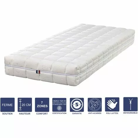Technologie matelas : Face été + ‰me en Mousse Poli Lattex Derniére Génération Indéformable Trés Haute Résilience – Face Hiver 4,5 cm de Mousse à Mémoire de Forme Trés Haute Densité 60 Kg/m3 ” Massante”ƒpaisseur du matelas : +/- 20 cm
