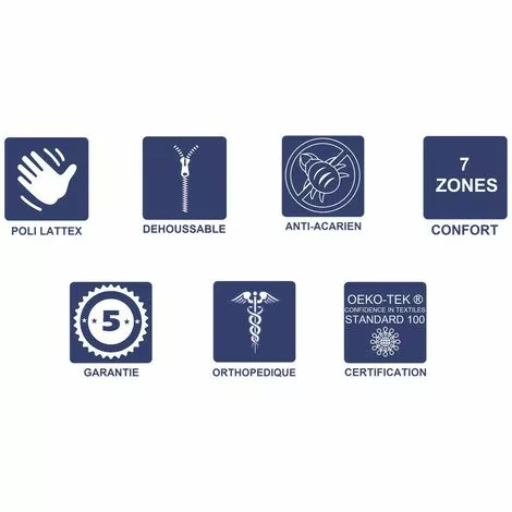 Plate-bande: Tissu Hyper RESPIRANT matelassé avec de la ouate polyester åme noyau : bloc de 15 cm de Mousse HAUTE RESILIENCE Poli Lattex derniére génération Indéformable La structure du matelas est divisée en 7 incroyables zones de confort qui s’adaptent à tous types de morphologies et aident à libérer les tensions musculaires pour soulager les maux de dos provoqués par de mauvaises postures au cours de la journée