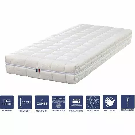 Technologie matelas : Face été + ‰me en Mousse Poli Lattex Derniére Génération Indéformable Trés Haute Résilience – Face Hiver 4,5 cm de Mousse à Mémoire de Forme Trés Haute Densité 60 Kg/m3 ” Massante”ƒpaisseur du matelas : +/- 20 cm