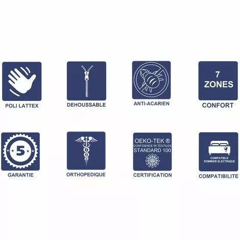 Plate-bande: Tissu Hyper RESPIRANT matelassé avec de la ouate polyester åme noyau : bloc de 15 cm de Mousse HAUTE RESILIENCE Poli Lattex derniére génération Indéformable La structure du matelas est divisée en 7 incroyables zones de confort qui s’adaptent à tous types de morphologies et aident à libérer les tensions musculaires pour soulager les maux de dos provoqués par de mauvaises postures au cours de la journée