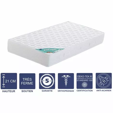 Technologie matelas : Mousse Aertech+ Trés Haute Densité HR 35 Kg/m3 Derniére Générationƒpaisseur du matelas : +/- 21 cm