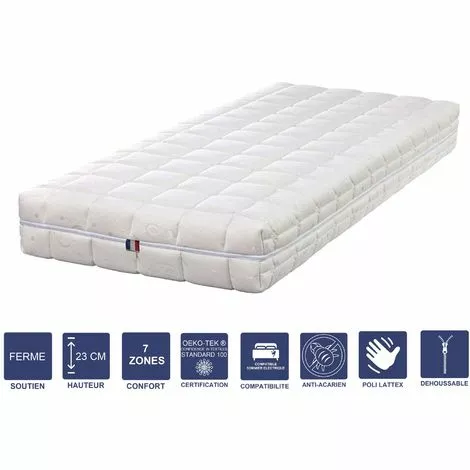 Technologie matelas : Face été + ‰me en Mousse Poli Lattex Derniére Génération Indéformable Trés Haute Résilience – Face Hiver 4,5 cm de Mousse à Mémoire de Forme Trés Haute Densité 60 Kg/m3 ” Massante”ƒpaisseur du matelas : +/- 23 cm