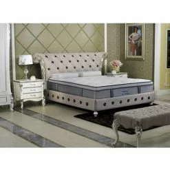 MATELAS:· Accueil : Moelleux .· Soutien : Equilibre .· Technologie matelas :ame en Mousse Poli Lattex Derniere Generation + Ressorts Ensaches ( 683 pour un matelas140 ) Indeformable Tres Haute Resilience – latex Tres Haute Densite 75 Kg/m3 ” Massante”· epaisseur du matelas : +/- 20,5 cm.· REPOS PLUS SAIN grace au Traitement Anti-acariens / anti-bacterien / Anti-moisissures.· Tres Bonne Independance de couchage.· DORMEZ TRANQUILLE avec la Garantie 5 ans. Coutil:· Coutil stretch matelasse de 290 gr/m2 de Polyester avec traitement Sanitized. · SANITIZED : Traitement antibacterien et anti-moisissures diminuant egalement le developpement des odeurs.Structure et garnissage du matelas:· Face Dormeur : 1,5 cm de mousse profilee a Haute Ventilation pour Maximiser le Confort + coutil en tissu 3D pour la bonne Respiration du noyau matelasse Air System.· Tissu Hyper Respirant realise en 3 dimensions qui permet une circulation libre de l’air offrant ainsi une plus grande ventilation et d’hygiene.· Plate-bande: Tissu Hyper RESPIRANT matelasse avec de la ouate polyester · ame noyau : Ressorts Ensaches ( 683 pour un matelas140 ) Indeformable Tres Haute Resilience · La structure du matelas est divisee en 5 Zones de confort qui s’adaptent a tous types de morphologies et aident a liberer les tensions musculaires pour soulager les maux de dos provoques par de mauvaises postures au cours de la journee.· Oreiller latex 55 Kg/m3 sensible a la chaleur et auto-modelant. Il reduit les points de pression et garantit un soutien optimal de la zone des cervicales. ERGONOMIQUE – MOUSSE MOULEE – ANTIBACTERIEN – PAS DE CFC – INDEFORMABLE – ANTI TRANSPIRANT – SANS COLLE – ANALLERGIQUE – RECYCLABLE – VISCOELASTIQUE + PROTEGE MATELAS Impermeable Hygienique – Ajustable pour Matelas de 13 a 35 cm de Hauteur – Absorbant et Respirant – Barriere anti-Acariens – Dessus 35% coton 65 % Polyester – Dessous en Peva : matiere Ferme et ecologique – Il prolongera la duree de vie de votre matelas· TISSUS CERTIFIES : Systeme de QUALITE Certifie Oeko-tex 100 , Certipur teste contre les substances nocives. Certification ISO 9001