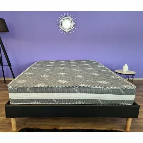 MATELAS:· Accueil : Ferme .· Soutien : Ferme .· Technologie : Mousse Poli Lattex Dernière Génération Haute Densité· Épaisseur du matelas : +/- 22 cm.· REPOS PLUS SAIN grâce au Traitement Anti-acariens / anti-bactérien · Indépendance de couchage.· Garanti 5 ans.Coutil:· Coutil stretch matelassé de 290 gr/m2 de Polyester. Face Hiver avec PURE LAINE MERINOS et un toucher Doux et Soyeux· Face été Tissu à l’Aloe Vera aux nombreux Bienfaits· SANITIZED : Traitement antibactérien et anti-moisissures diminuant également le développement des odeurs.Structure et garnissage du matelas:· Plateau supérieur : coutil en tissu stretch matelassé avec 1,5 cm de mousse profilée à Haute Ventilation pour Maximiser le Confort· Plateau inférieur : coutil en tissu 3D pour la bonne Respiration du noyau matelassé Air System.· Tissu Hyper Respirant réalisé en 3 dimensions qui permet une circulation libre de l’air offrant ainsi une plus grande ventilation et d’hygiène.· Plate-bande: Tissu Hyper RESPIRANT matelassé avec de la ouate polyester et des poignées cousues à la main.· Âme noyau : bloc de 19 cm de Mousse HAUTE RESILIENCE Poli Lattex Dernière Génération Haute Densité Indéformable· Passepoil de renfort· TISSUS CERTIFIES : Système de Qualité Certifié Oeko-tex 100 , Certipur testé contre les substances nocives. Certification ISO 9001· OREILLER Mémoire 60×60 cm Mousse à Mémoire de Forme 55 Kg/m3 sensible à la chaleur et auto-modelant .- ANTIBACTERIEN – PAS DE CFC – INDEFORMABLE – ANTI TRANSPIRANT – SANS COLLE – ANALLERGIQUE – RECYCLABLE – VISCOELASTIQUE