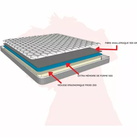 Le matelas est multicouche, combinaison de mĂ©moire de forme et mousse ergonomique 25 kg/m3. La mousse ergonomique de polyurĂ©thane peut ĂŞtre utilisĂ©e pour produire la structure interne (Ă©galement appelĂ©e “solide”) d’un matelas simple, ou elle peut ĂŞtre la base de support pour les matelas avec une ou plusieurs couches. La principale caractĂ©ristique des matelas fabriquĂ©s avec des mousses de polyurĂ©thane est leur capacitĂ© Ă faire face Ă diffĂ©rents types de pression sans subir de dĂ©formations majeures. L’Ă©lasticitĂ© et la rĂ©silience qui les distinguent leur permettent de reprendre leur forme initiale malgrĂ© la forte fatigue subie.