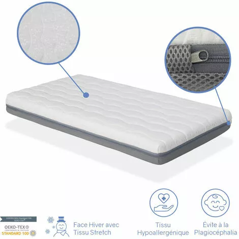 Ce matelas a une hauteur de 11 cm. Il pèse environ 2,9 kg et est fabriqué avec des composants sûrs et non nocifs pour la santé de notre bébé. L’âge recommandé est de 0 à 24 mois. Ce matelas de lit de bébé est parfaitement valide pour être utilisé dès la naissance à la transition vers le lit.