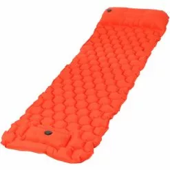 TANCYCO Tapis De Couchage Gonflable Avec Matelas à Air De Pompe à Pied D’oreiller Pour Les Voyages De Randonnée Pédestre,Orange,Modèle De Cellule Polygone