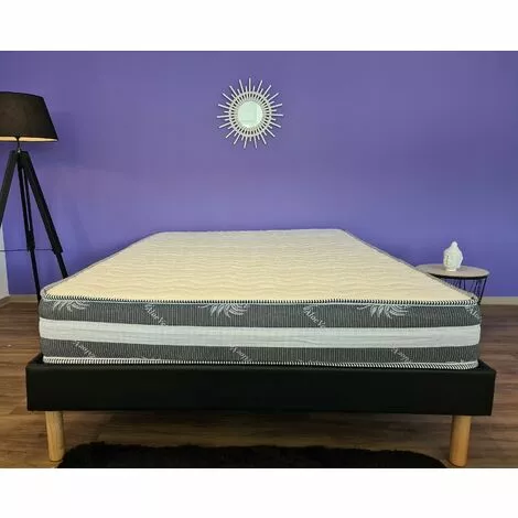 MATELAS:· Accueil : Ferme .· Soutien : Très Ferme .· Technologie : Mousse Poli Lattex Dernière Génération Haute Densité· Épaisseur du matelas : +/- 22 cm.· REPOS PLUS SAIN grâce au Traitement Anti-acariens / anti-bactérien · Indépendance de couchage.· Garanti 5 ans.Coutil:· Coutil stretch matelassé de 290 gr/m2 de Polyester. Face Hiver avec PURE LAINE MERINOS et un toucher Doux et Soyeux· Face été Tissu à l’Aloe Vera aux nombreux Bienfaits· SANITIZED : Traitement antibactérien et anti-moisissures diminuant également le développement des odeurs.Structure et garnissage du matelas:· Plateau supérieur : coutil en tissu stretch matelassé avec 1,5 cm de mousse profilée à Haute Ventilation pour Maximiser le Confort· Plateau inférieur : coutil en tissu 3D pour la bonne Respiration du noyau matelassé Air System.· Tissu Hyper Respirant réalisé en 3 dimensions qui permet une circulation libre de l’air offrant ainsi une plus grande ventilation et d’hygiène.· Plate-bande: Tissu Hyper RESPIRANT matelassé avec de la ouate polyester et des poignées cousues à la main.· Âme noyau : bloc de 19 cm de Mousse HAUTE RESILIENCE Poli Lattex Dernière Génération Haute Densité Indéformable· Passepoil de renfort· TISSUS CERTIFIES : Système de Qualité Certifié Oeko-tex 100 , Certipur testé contre les substances nocives. Certification ISO 9001· OREILLER Mémoire Cadeau 60×60 cm Mousse à Mémoire de Forme 55 Kg/m3 sensible à la chaleur et auto-modelant.- ANTIBACTERIEN – PAS DE CFC – INDEFORMABLE – ANTI TRANSPIRANT – SANS COLLE – ANALLERGIQUE – RECYCLABLE – VISCOELASTIQUE + PROTEGE MATELAS Imperméable Hygiènique – Ajustable pour Matelas de 13 à 35 cm de Hauteur – Dessous en Péva: matière souple et écologique – Il prolongera la durée de vie de votre matelas