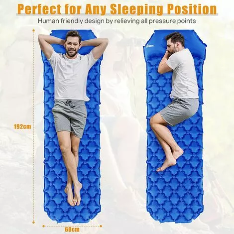 EXPÉRIENCE EXTÉRIEURE CONFORTABLE : Nos matelas gonflables sont plus épais et plus larges que les produits similaires, offrant plus d’espace pour se détendre. Les courbes ondulées de conception ergonomique offrent un confort, un soutien et une chaleur optimaux. Les matelas de camping de voyage vous offrent une bonne expérience de sommeil pendant vos voyages de camping.
