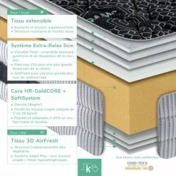 DREAMING KAMAHAUS Matelas Mousse Sense | Deux Faces : Viscoélastique / 3D AIRFRESH | Avec Fibre Hypoallergénique | Respirant | Réversible Hauteur: ±16cm 70 X 190 Cm
