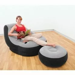 INTEX Lit Gonflable FiberTech – 1 Place – 191 X 99 Cm – 99 X 191 X 42 – Bleu Foncé