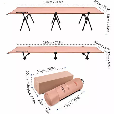 Le lit de camp pliant mesure 74,8 “x 25, 6”, offrant un espace de couchage ample et confortable pour vous; Supports détachables pour différents besoins de hauteur. Belle option de couchage pour le camping, la randonnée, la randonnée, les voyages en voiture, les voyages, l’exploration générale et la cour.