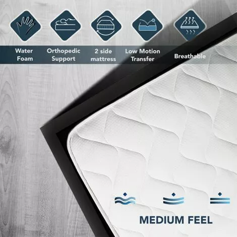 CONFORT ERGONOMIQUE. La zone centrale de ce matelas à mémoire de forme est composée de deux couches de mousses différentes comprimées ensembles: mémoire de forme, et mousse Waterfoam.