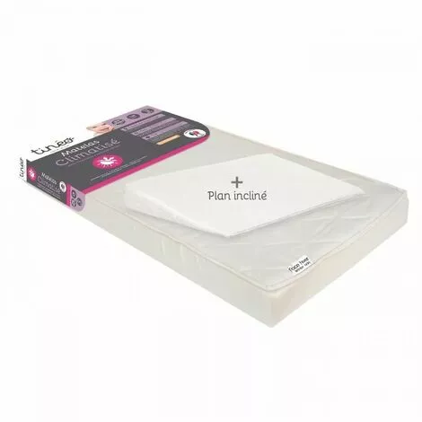 • Matelas : Un matelas tres bon rapport qualité/prix pour équiper bébé • EVOLUTIF : Face hiver : tissu matelassé pour garder bébé bien au chaud • Face été : tissu en coton polyester qui garantit a votre bébé une température optimale • CONFORTABLE : Coeur en mousse polyuréthane de densité 16kg/m3 • MALIN : Une bande ‘face hiver’ cousue sur le matelas pour identifier facilement les faces de couchage • FABRIQUÉ EN FRANCE • ANTI ACARIENS / ANTIBACTERIEN / ANTI MOISISSURES • Plan incliné pour le bien etre de bébé • INCLINAISON 15° : Suréleve la tete de bébé afin de lui garantir un meilleur sommeil • INSTALLATION FACILE : Se glisse entre le matelas et le drap housse • DEHOUSSABLE Pour lit 60×120